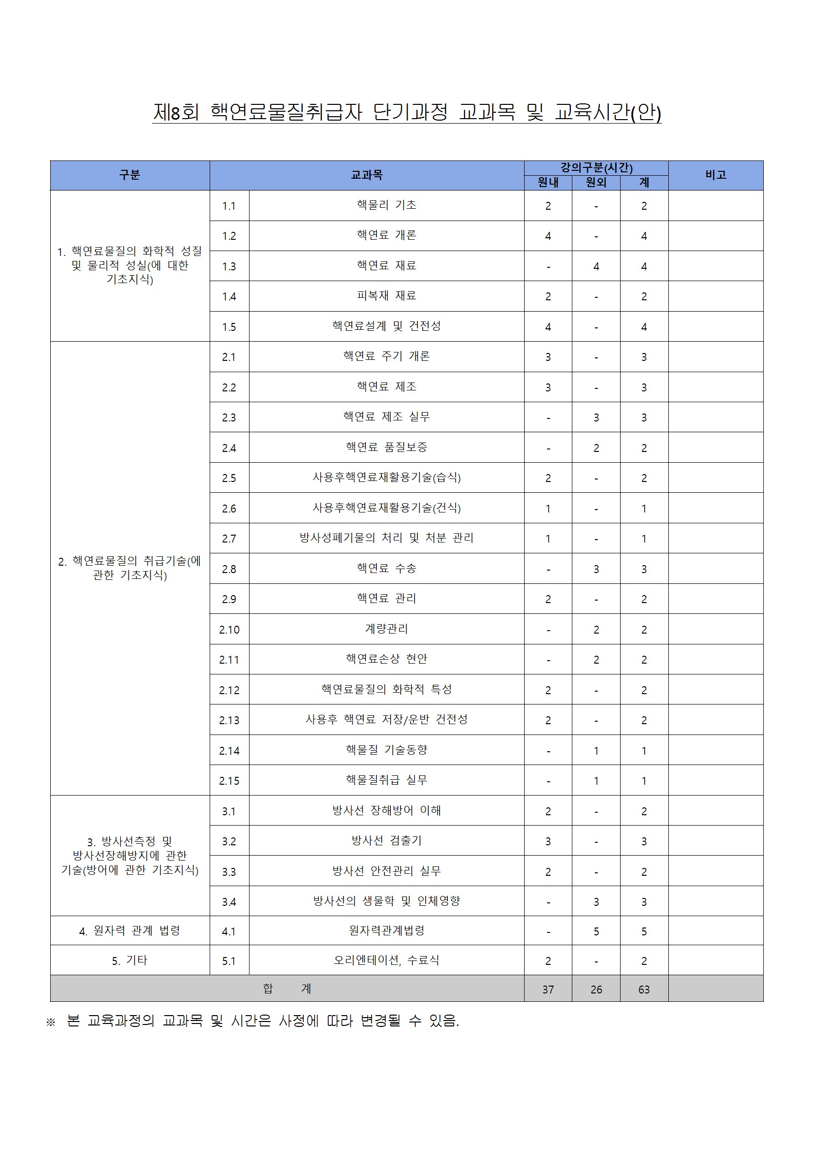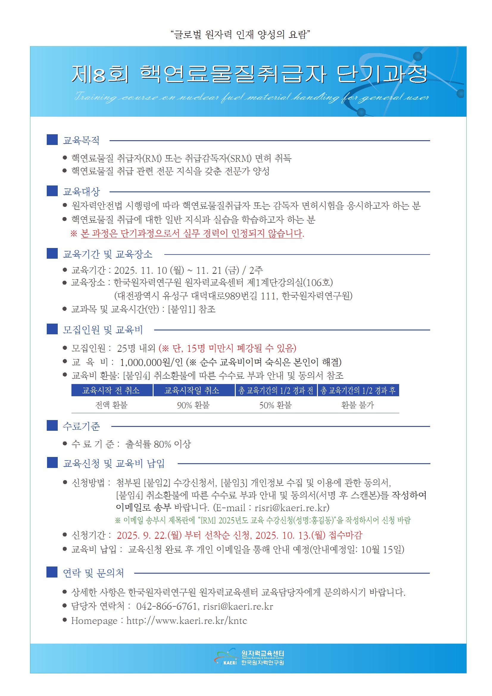 제8회 핵연료물질취급자 단기과정 수강신청 안내