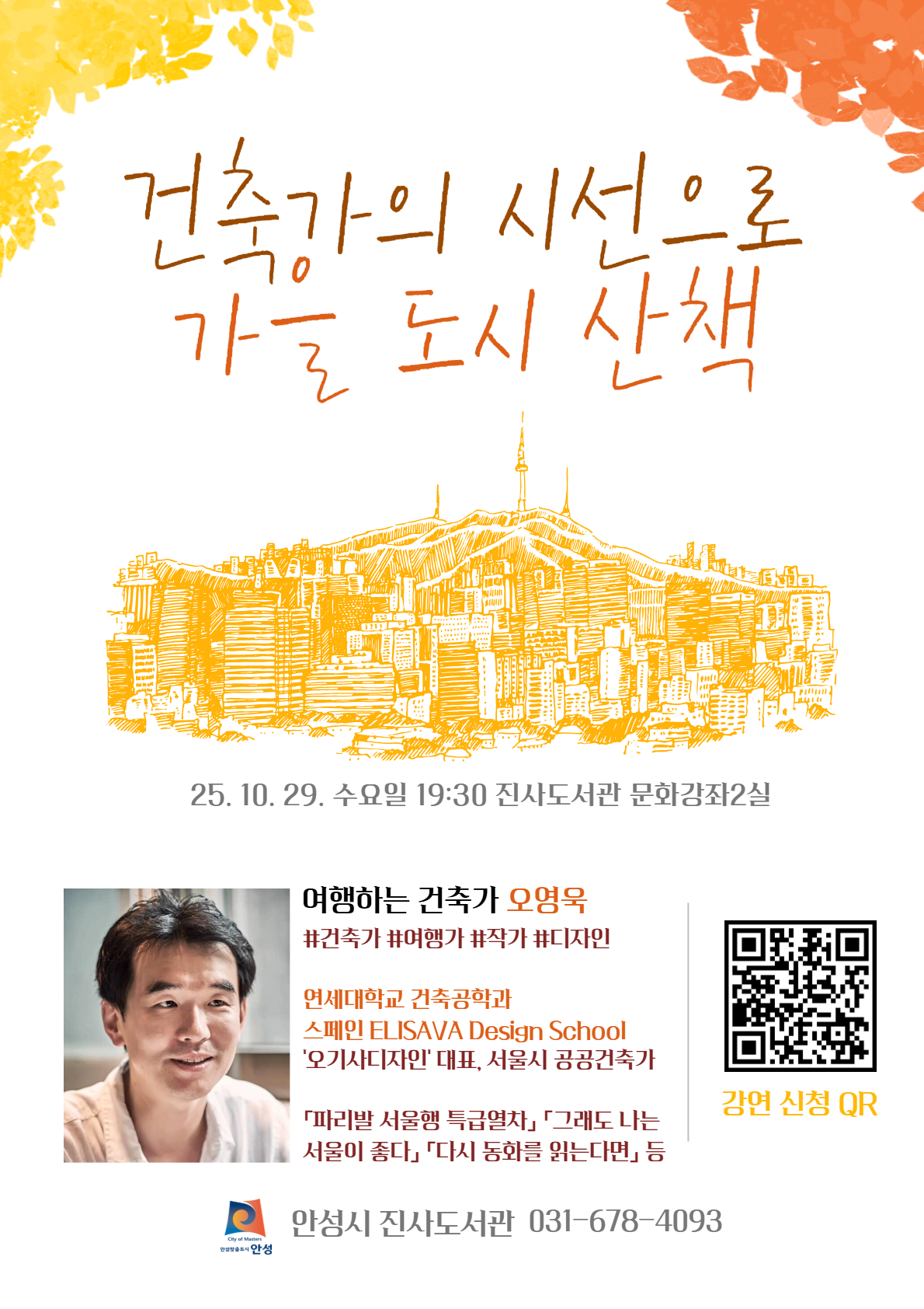 진사도서관 예술 인문학 작가 초청 강연 「건축가의 시선으로, 가을 도시 산책」 홍보