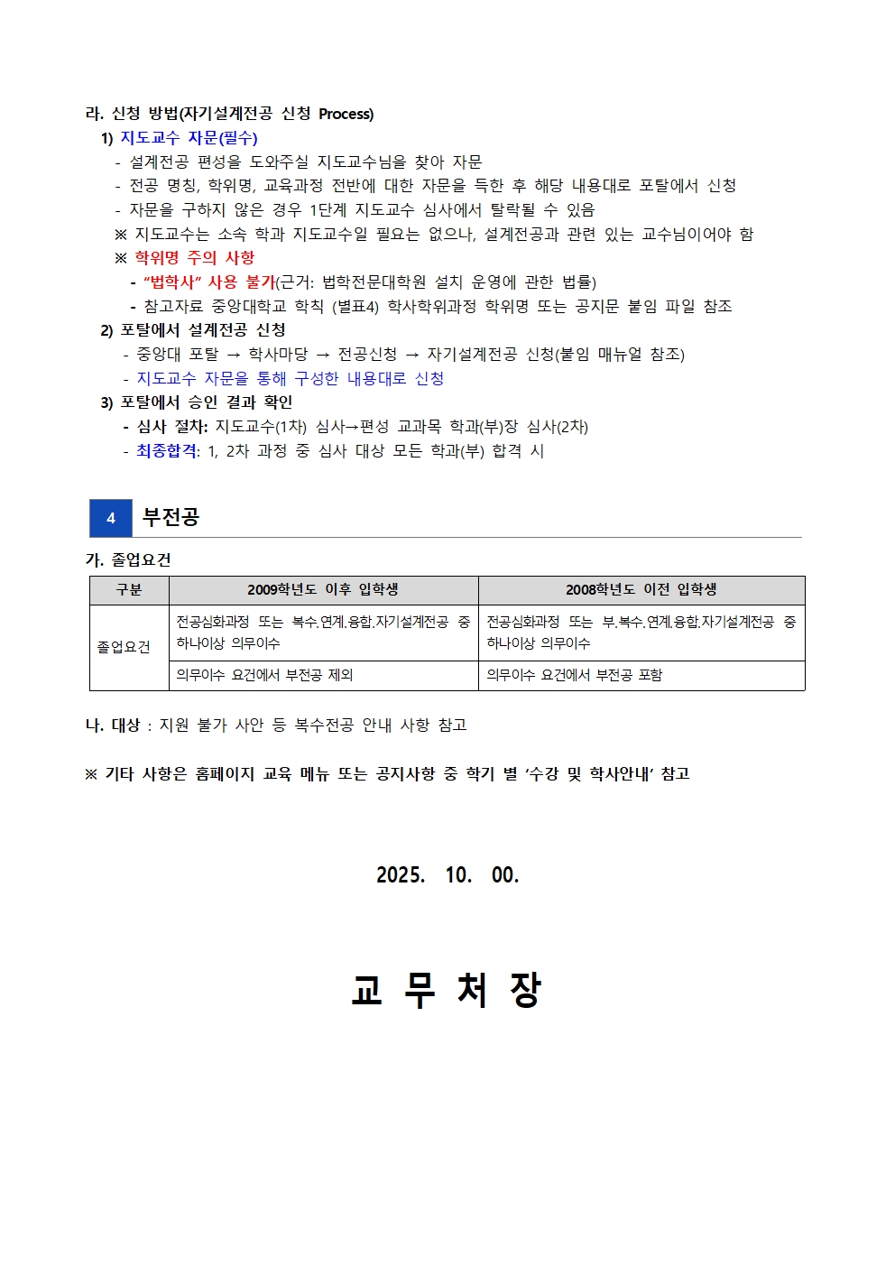 2026학년도 1학기 복수,연계,융합,자기설계,부전공 신청 안내